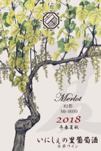 2018年9月26日自園のケルナーとGWC(ジェノヴァダブルカーテン)棚仕立てのシャルドネを収穫しました。シャルドネは少し早かったのですが、ケルナーは糖度22度を超え年前半からの猛暑も手伝ってとても良い葡萄が収穫出来ました。量が少なかった事もあり手除梗しながら選果、混醸。低温(15℃)発酵、MLF(乳酸発酵)を行い20L斗瓶にて6か月熟成。今回はプロトタイプとして「冬春夏秋シリーズ」とは一線を画しオリジナルラベルとしてリリース。アルコール度数が高く、和柑橘系の香りを感じる日本酒のような味わいなので、刺身や寿司など和食との相性が良いです。