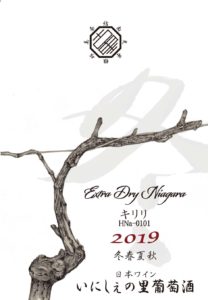 ナイアガラ3姉弟の長女。端正な顔立ちのハーフ、曲がった事が大嫌いな真面目で凛とした性格。早摘みしたナイアガラを使い低温(12℃位)で発酵し、独特なフォックスフレーバーを抑え酸味のキリリッと効いた辛口白ワインです。2019年は昨年とは打って変わって、前半しっかりと梅雨空が続き、7月まで低温と日照不足、収穫時期になってもなかなか糖度が上がらず、酸が落ちませんでした。ナイアガラにとっては難しい年となりました。酸味がしっかりしているので食事と合わせやすく、寿司や刺身、カルパッチョや魚介系のサラダ等と相性が良いと思います。